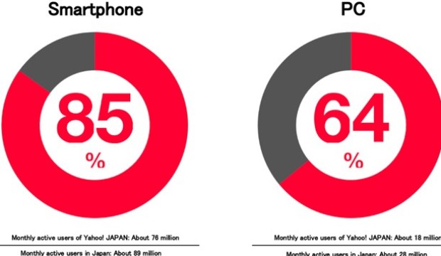 大量的日本智能手机和电脑用户访问Yahoo! JAPAN。超过80%的日本互联网用户每天上网。(*3)